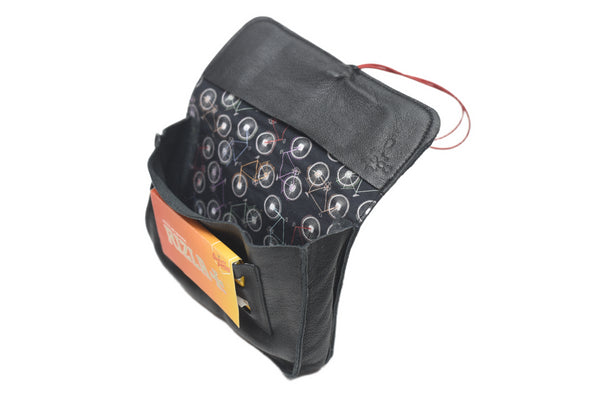 "Kadidiri" blague à tabac artisanale - cuir marron - tissu assorti. Plié : 14 cm * 8,5 cm