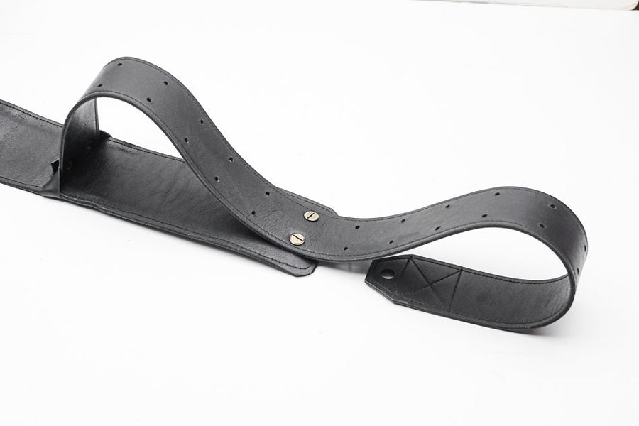 Sangle cuir cousu deux faces ✓ Cuir noir. Sangle cousue main